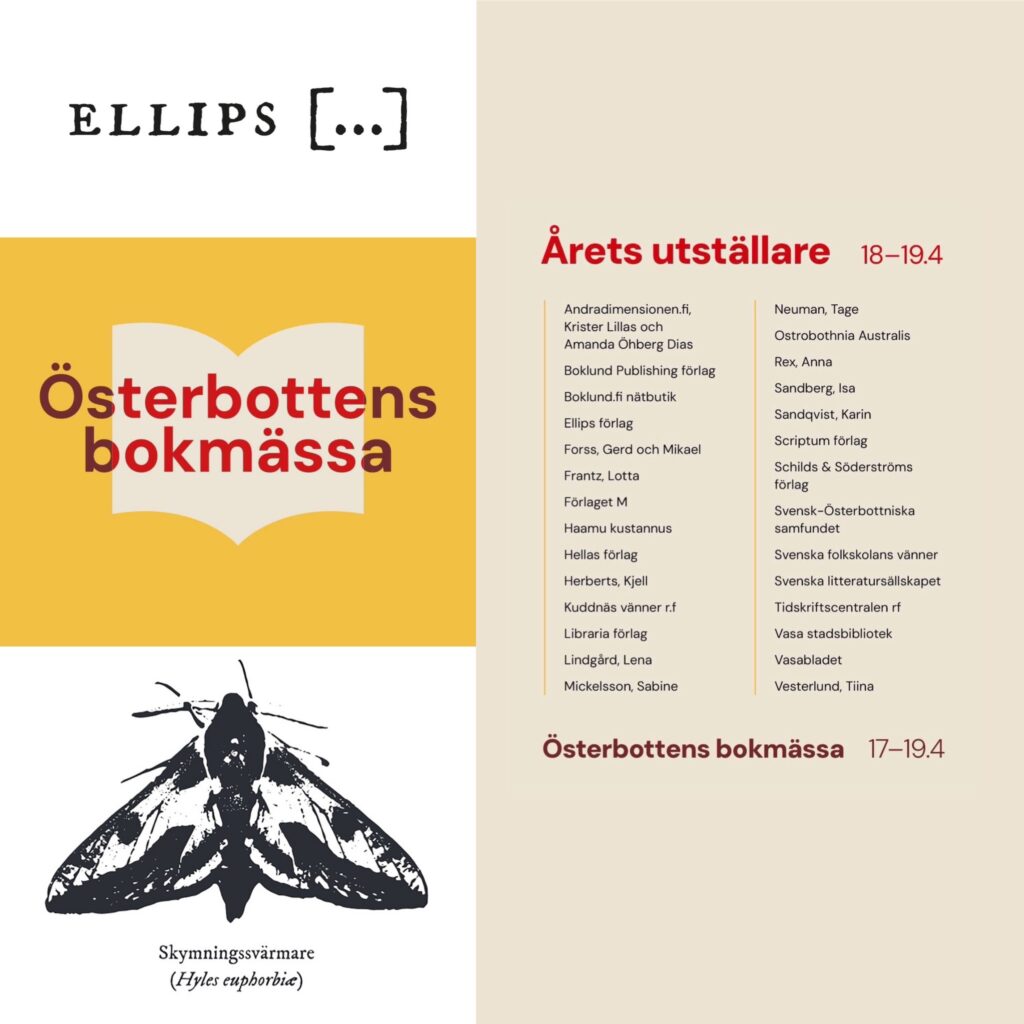 Ellips deltar i Österbottens bokmässa 17-19 april Klicka på bilden så kan du se programmet Två nya diktsamlingar! KOMMER I APRIL Klicka på bilden! Beställningar | tilaukset | orders: