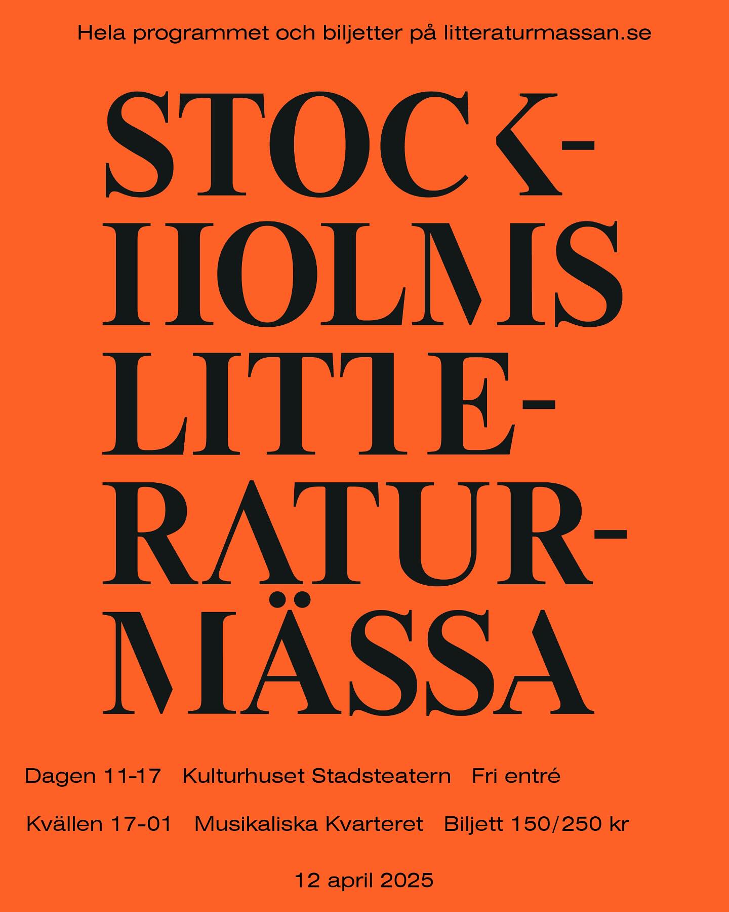 Den 12 april äger Stockholms litteraturmässa rum på Kulturhuset Stadsteatern. Här visar femtio förlag och kulturtidskrifter sin utgivning i en stor inspirerande utställning med försäljning.